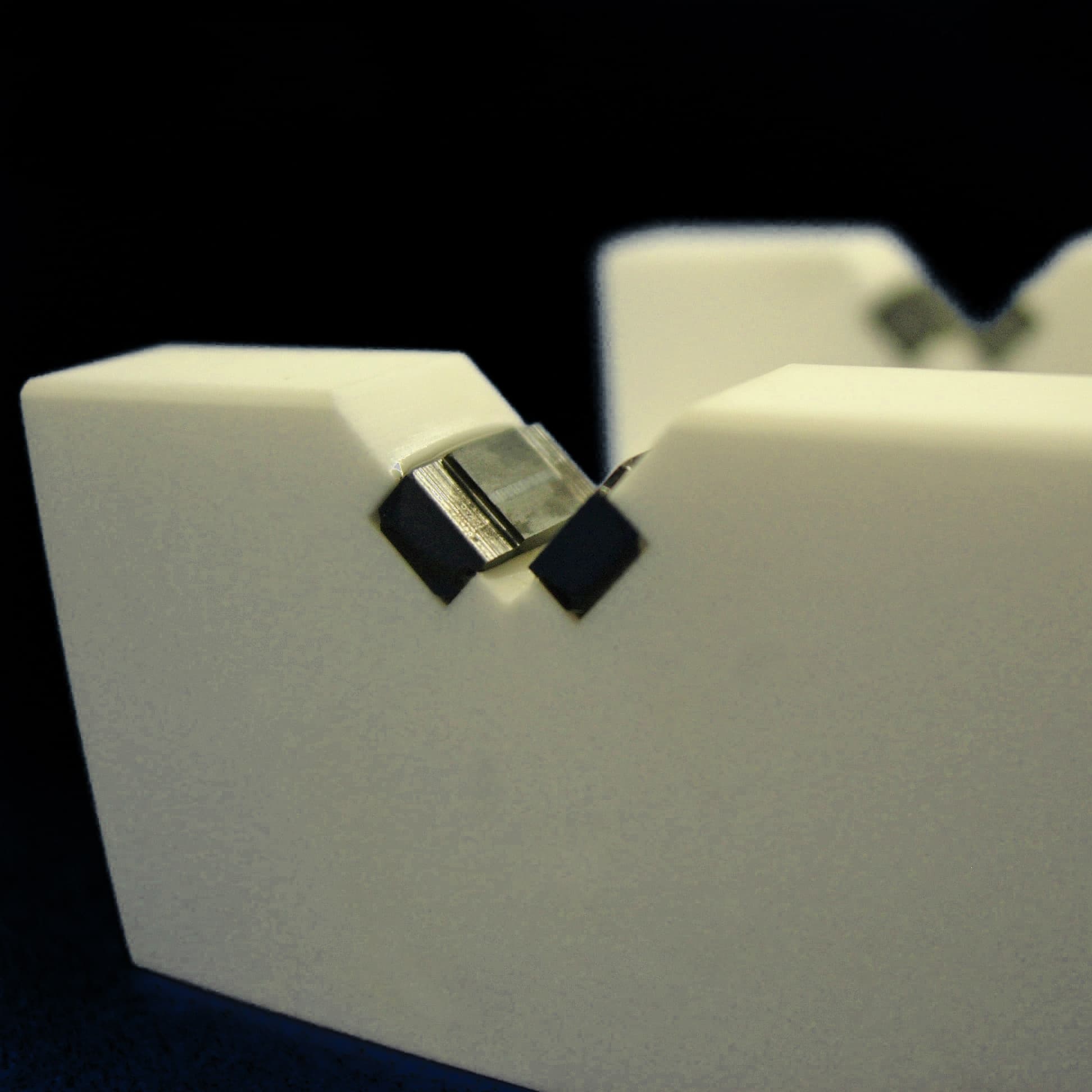 固定圆柱形产品,在与产品接触的部分使用PCD的夹具。通过延长寿命,可以提高生产效率。