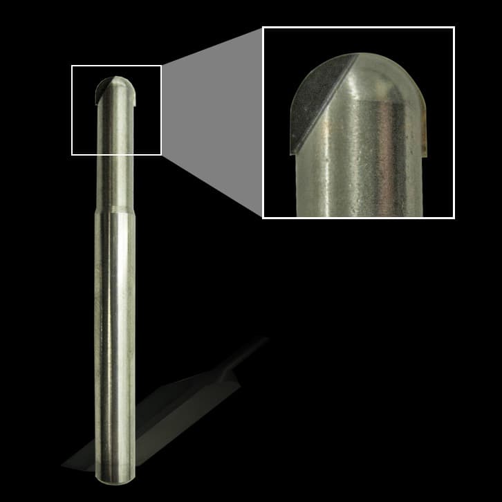 While conventional die machining requires several carbide end mills, CBN ball end mills can be used for free-form surface machining of small precision metal dies and enable machining with a single tool. They also increase tool life and reduce required working time.
