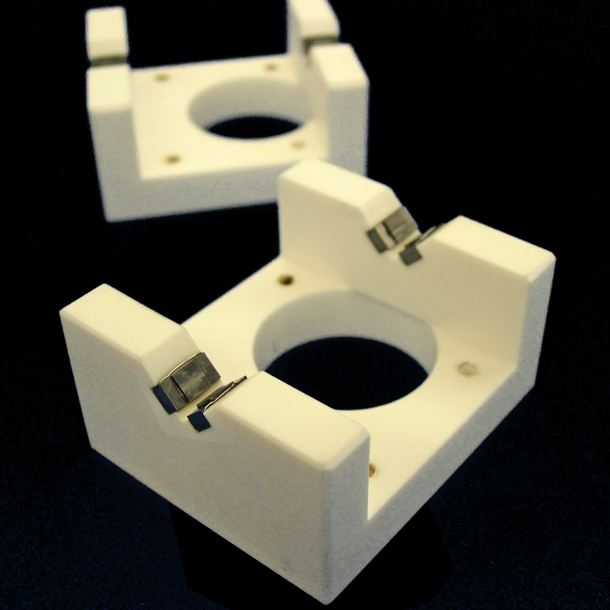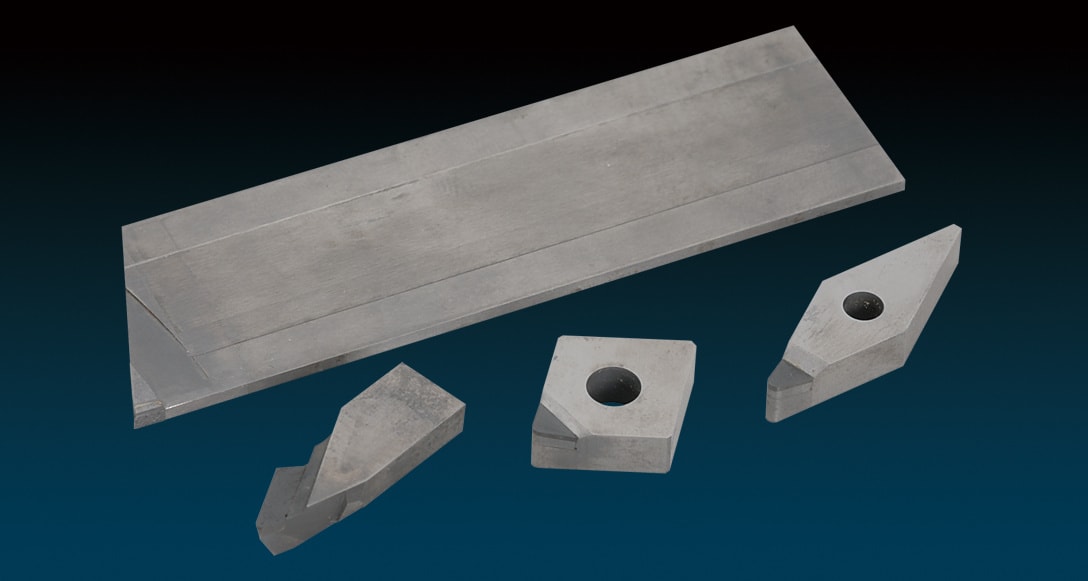 Jigs that hold cylindrical products and feature PCD on parts that come into contact with the product. Prolonging the lifespan results in improved productivity.