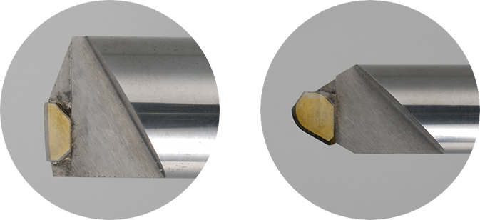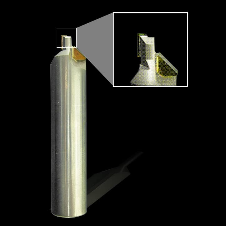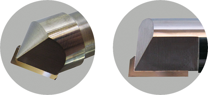 Compatible with brazing and soldering technology, the shape of these end mills makes it possible to machine multiple surfaces at once. These tools are primarily used for machining mirror surfaces on resin.