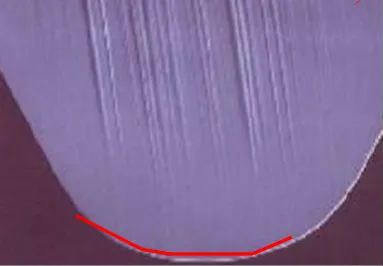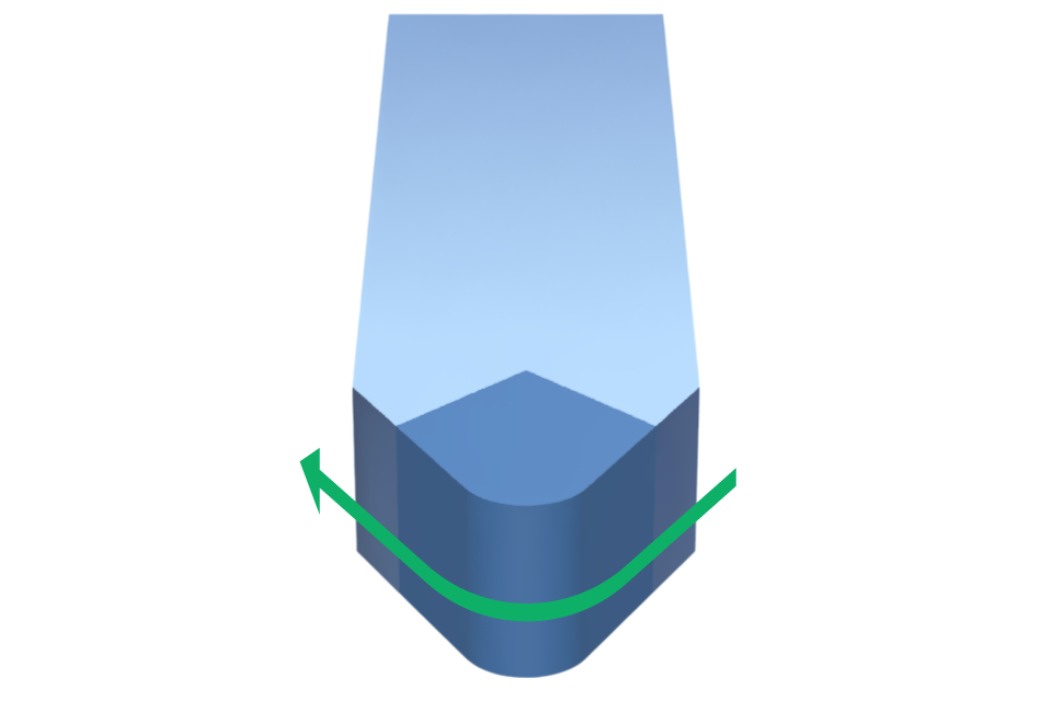 刃先を横からRに沿って、優しく拭き取ってください。一方向で刃先をこすらないようにご注意ください。