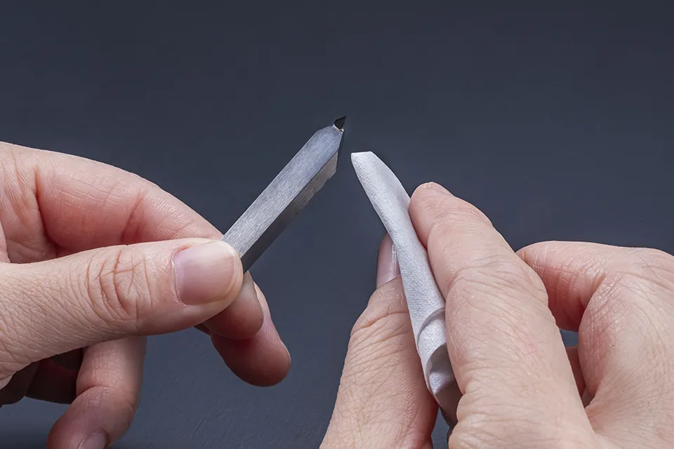 ダイヤモンドに直接触れないでください。刃先が損傷します。小さな欠けがあるとそこから摩耗し始めます。