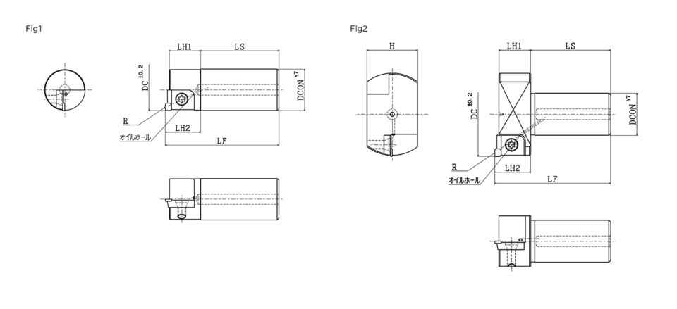 | 品番 | 型式品名 | 径 DC | LH1 | LH2 | シャンク長 LS | 全長 LF | シャンク径 DCON | Fig | 在庫 |