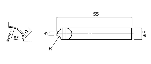 | 品番 | 型式品名 | 仕様 | 先端径 φ | 仕上R | 在庫 |
